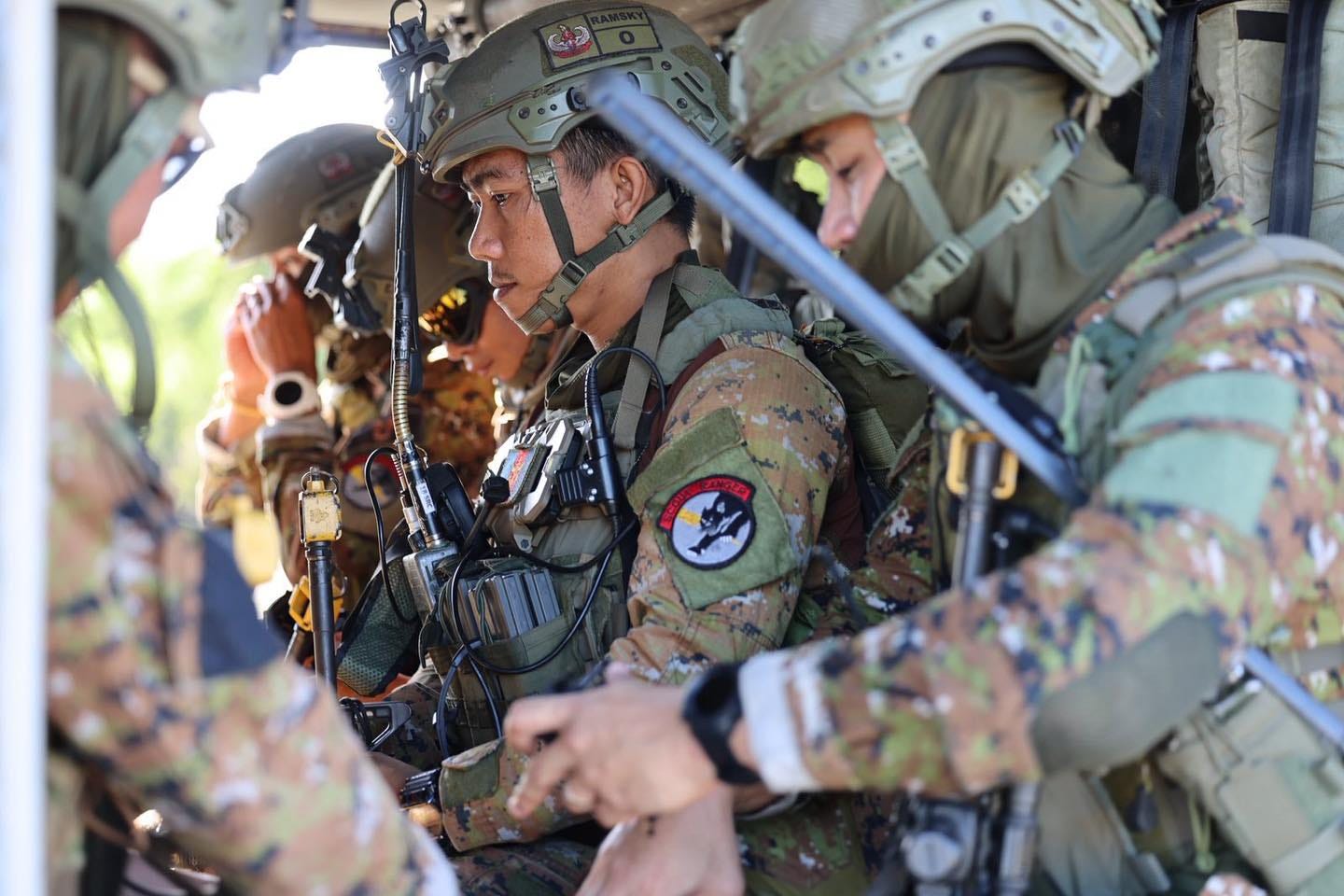 Philippine soldiers from the Scout Ranger Regiment aboard a U.S. Army UH-60 Black Hawk during Salaknib 2025 last May 23, 2025 at Fort Magsaysay. Photo from Philippine Army.